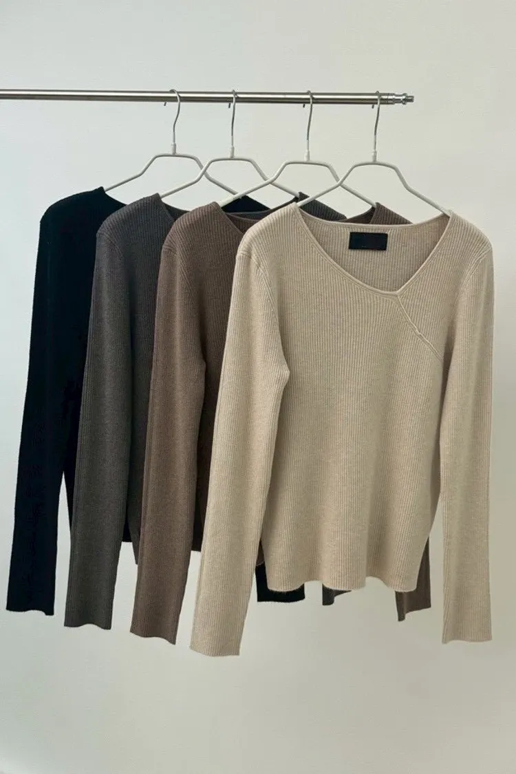羊絨5%羊毛30%車線坑條氣質上衣(杏,棕,灰,黑)