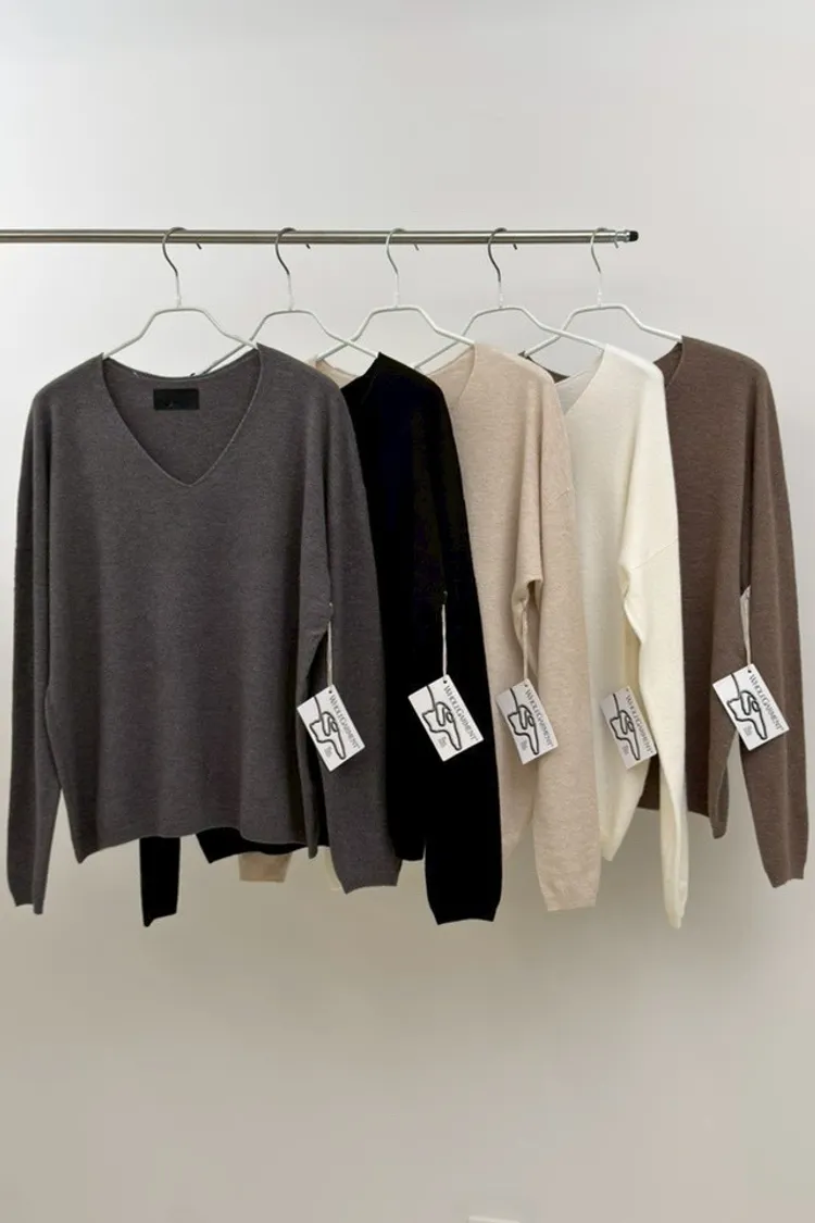 溫柔V領無肩線上衣(灰,黑,杏,白,咖)