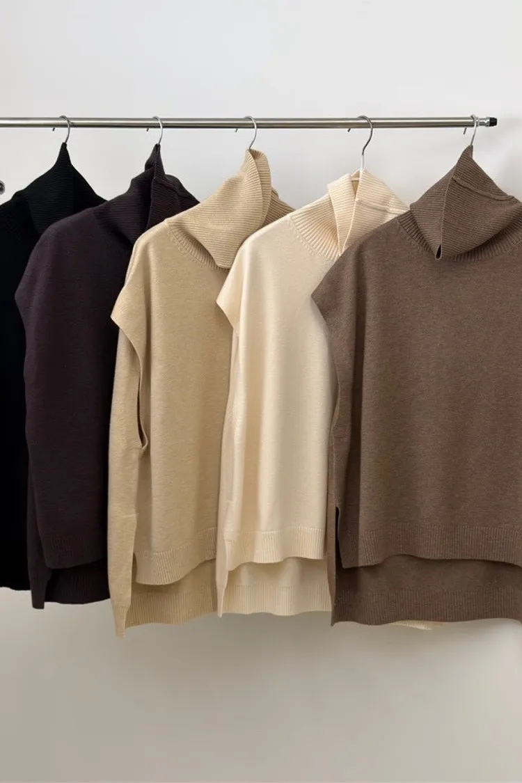 飛鼠袖高領上衣(棕,白,杏,灰,黑)