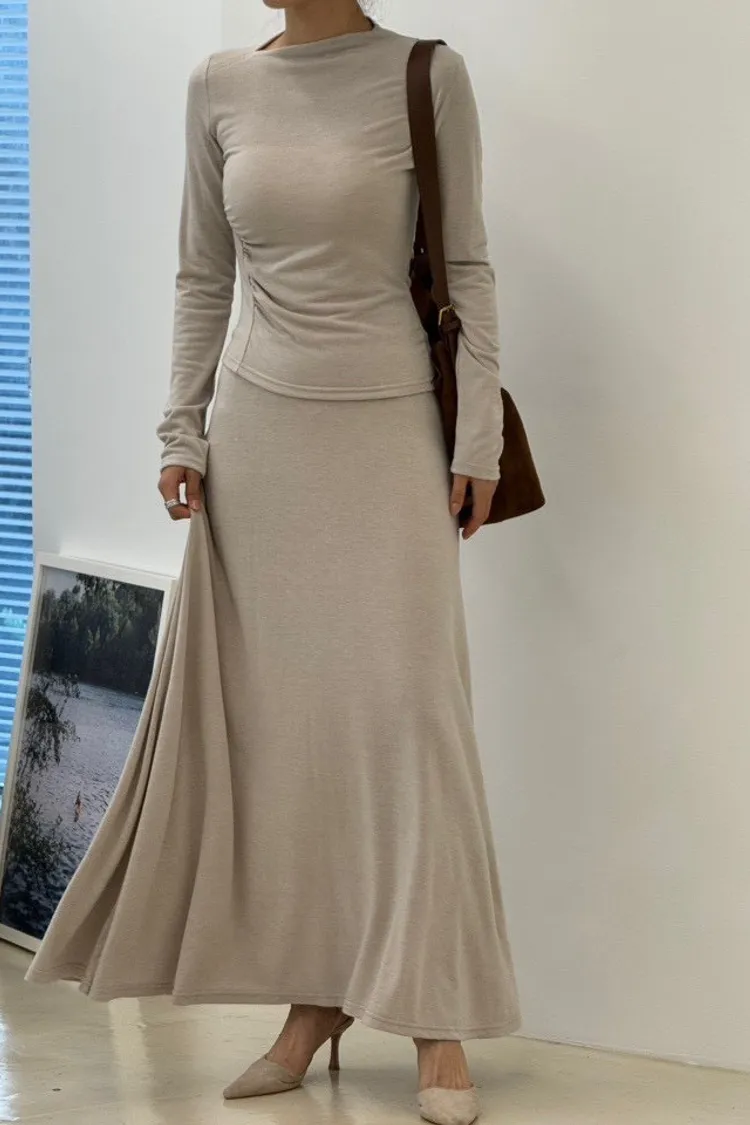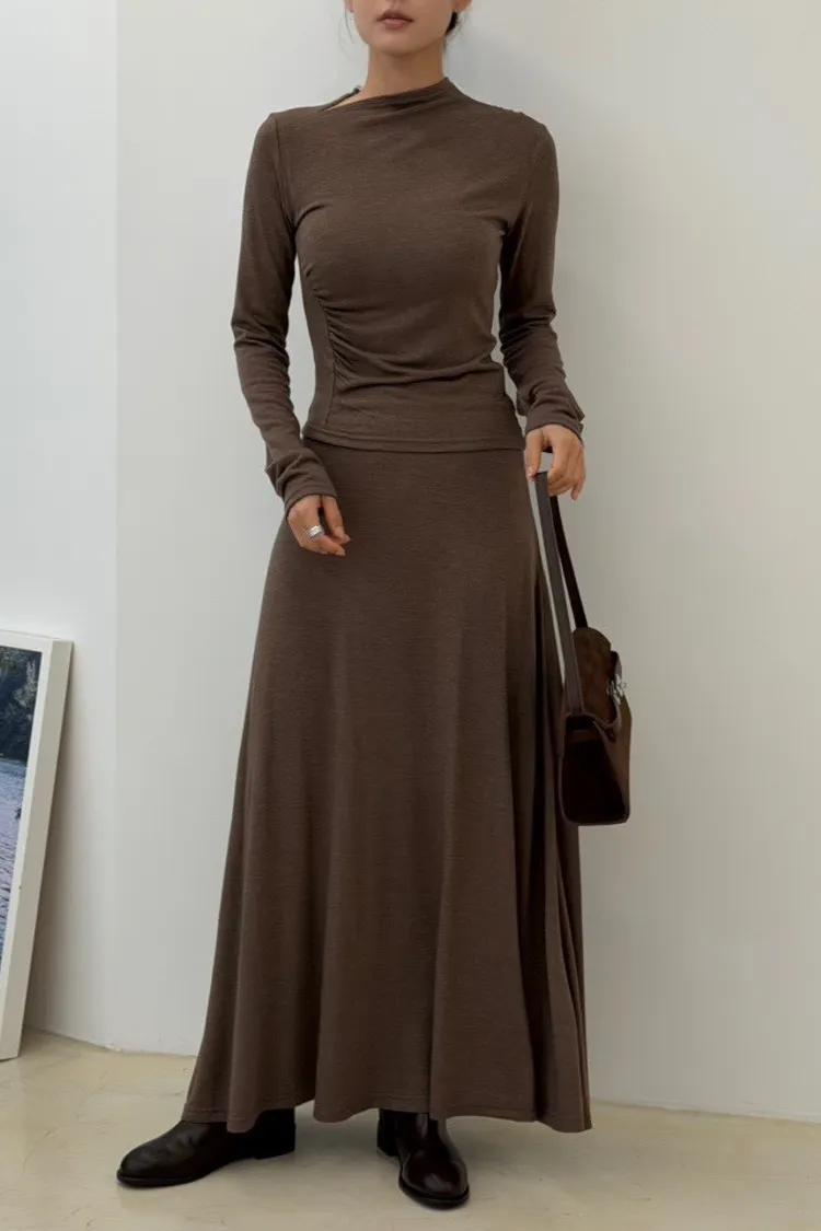 氣質垂墜鬆緊裙(杏,咖,黑)
