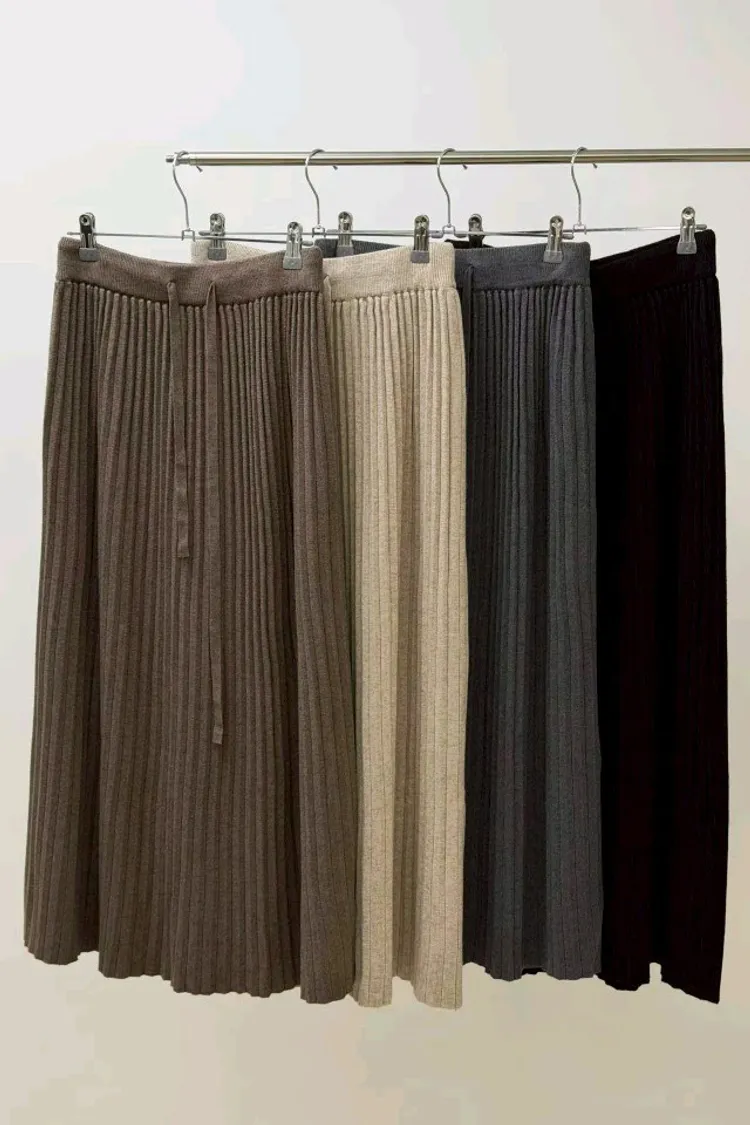 羊毛10%針織百褶綁帶裙(咖,杏,灰,黑)