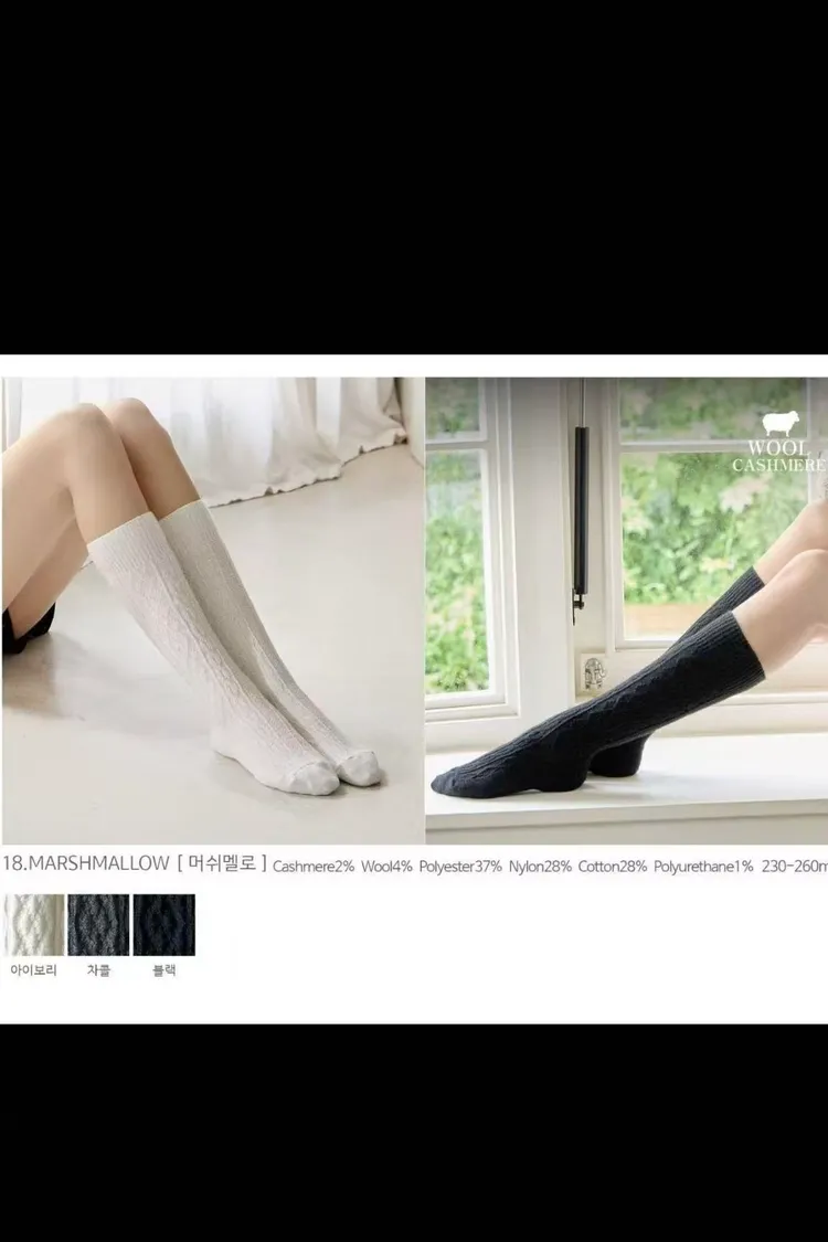 羊絨2%羊毛4%麻花長襪(白,灰,黑)