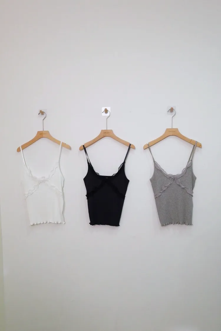 可調式坑條荷葉細肩細肩背心(白,灰,藍)