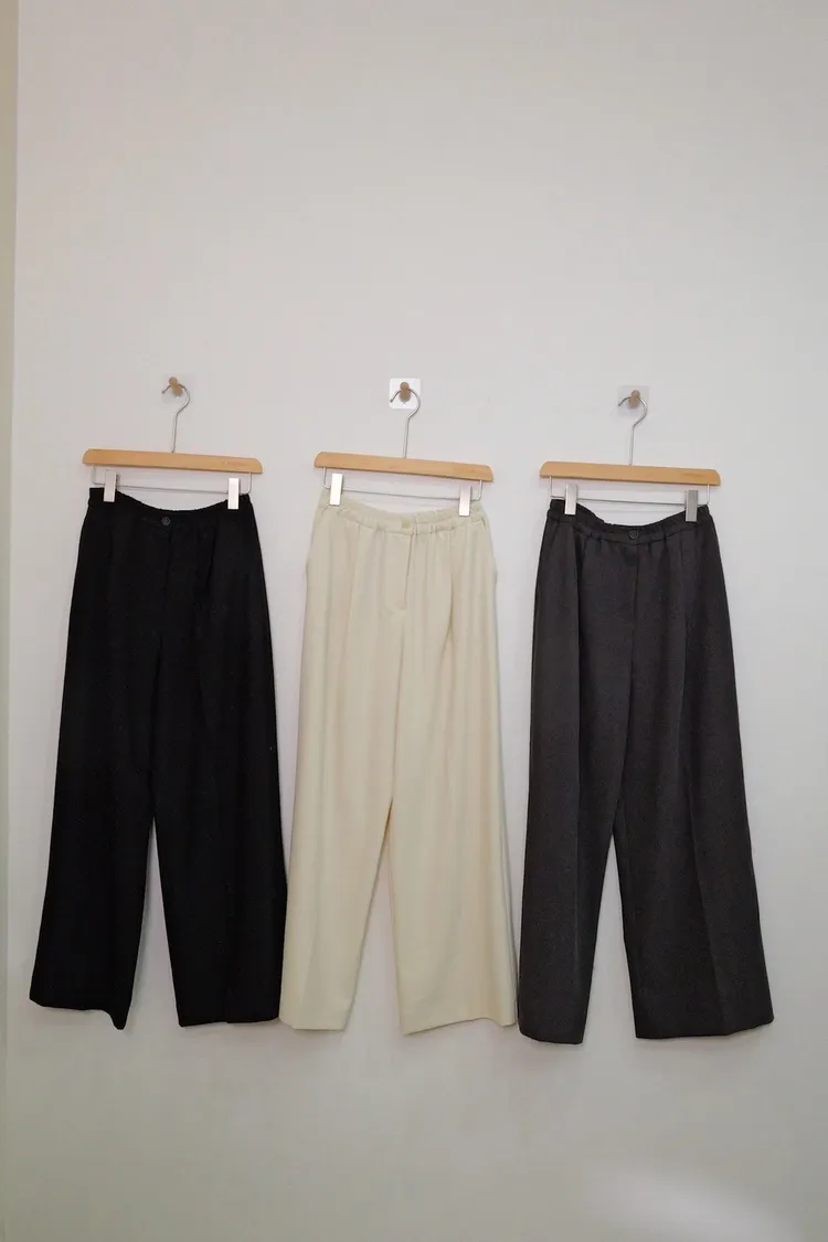 鬆緊打摺長褲(杏,灰,黑)