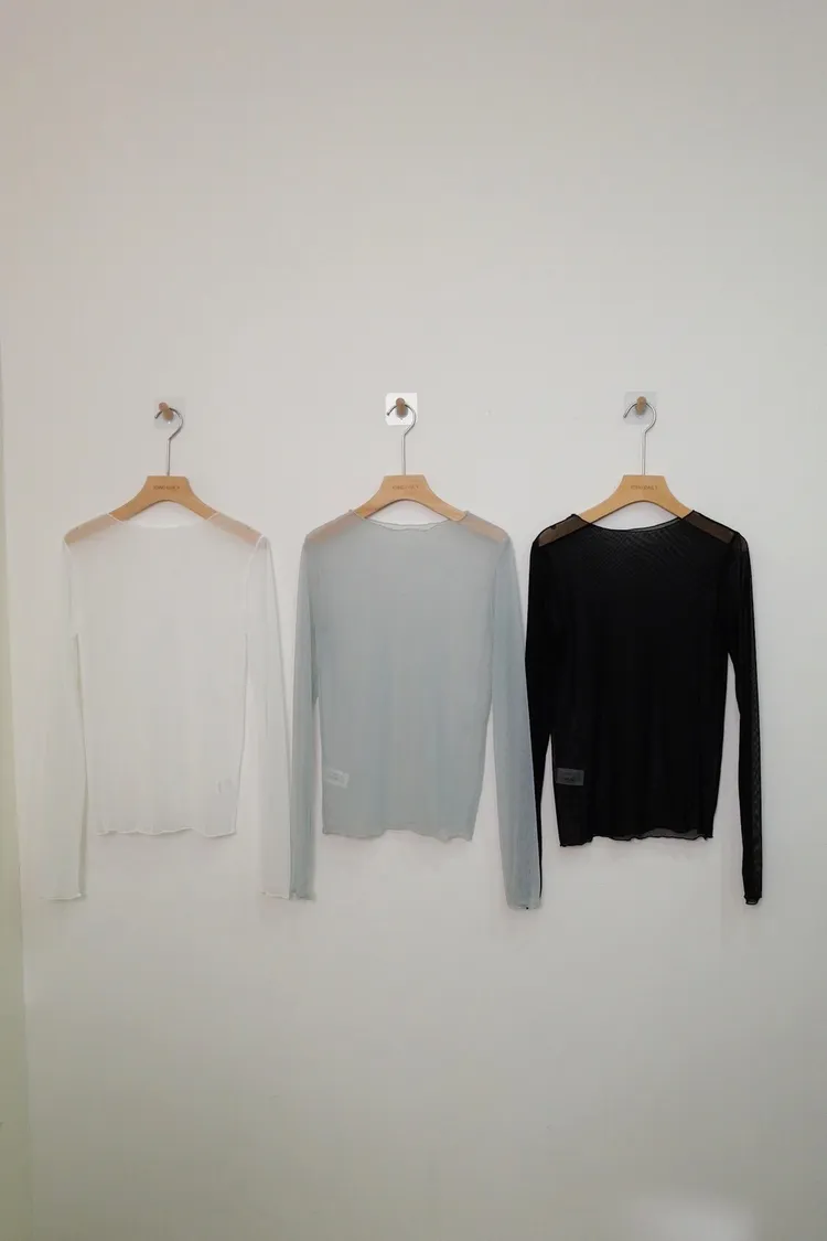 透膚滾邊上衣(白,灰,黑)