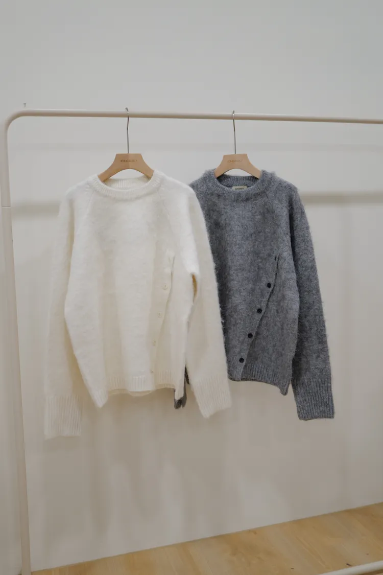 羊毛80%溫柔斜釦圓領上衣(白,灰)