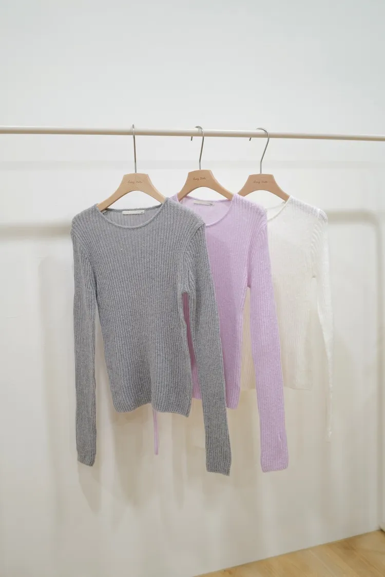 莫海爾山羊毛5%羊毛5%坑條貼身圓領上衣(白,粉,灰)