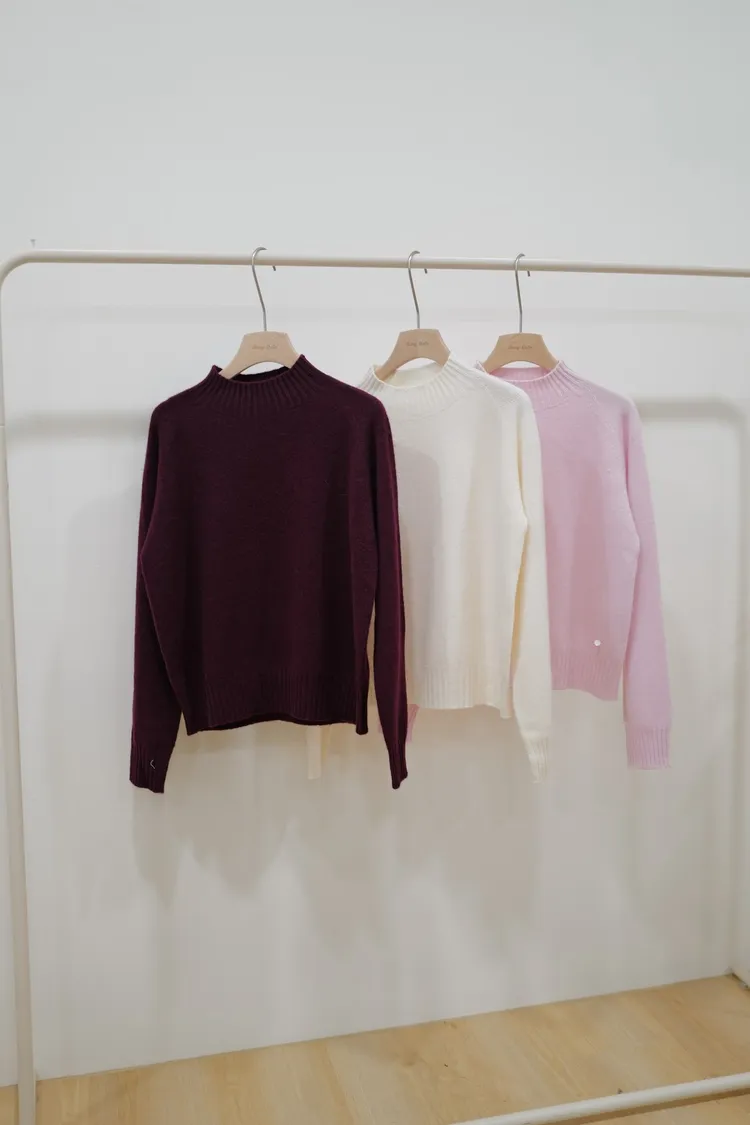超細羊毛4.5%高領無肩線上衣(白,粉,紅)
