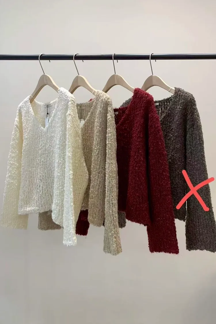 (限量款)馬海毛33%羊毛33%立體紋路V領上衣(白,紅)