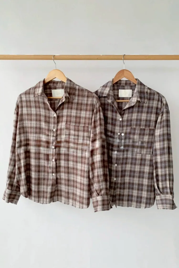 (限量款)口袋格紋襯衫(藍,咖)