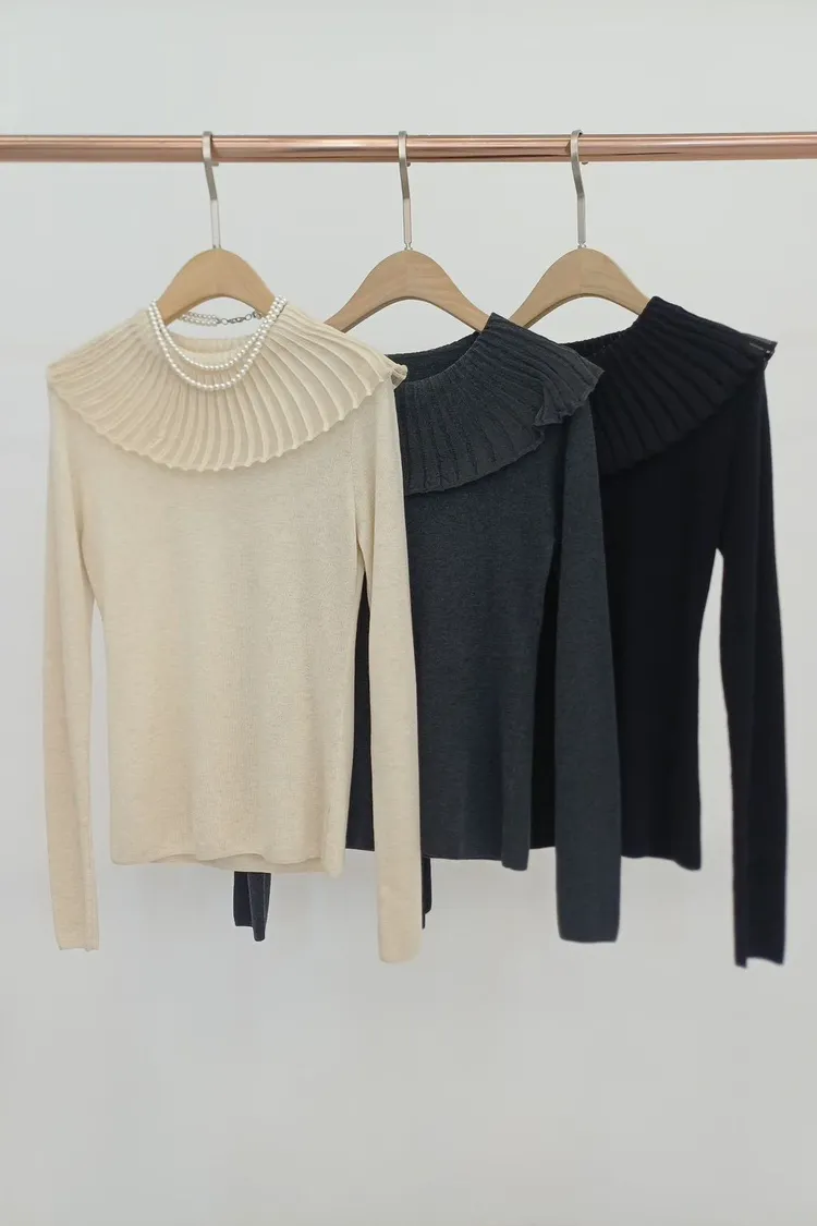 羊毛40%荷葉領造型上衣(杏,灰,黑)