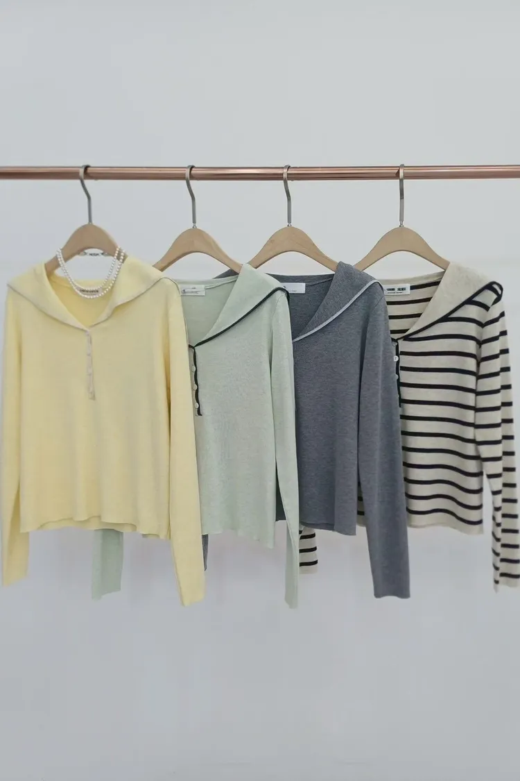 羊毛26%水手領滾邊減齡上衣(黃,綠,灰,杏)