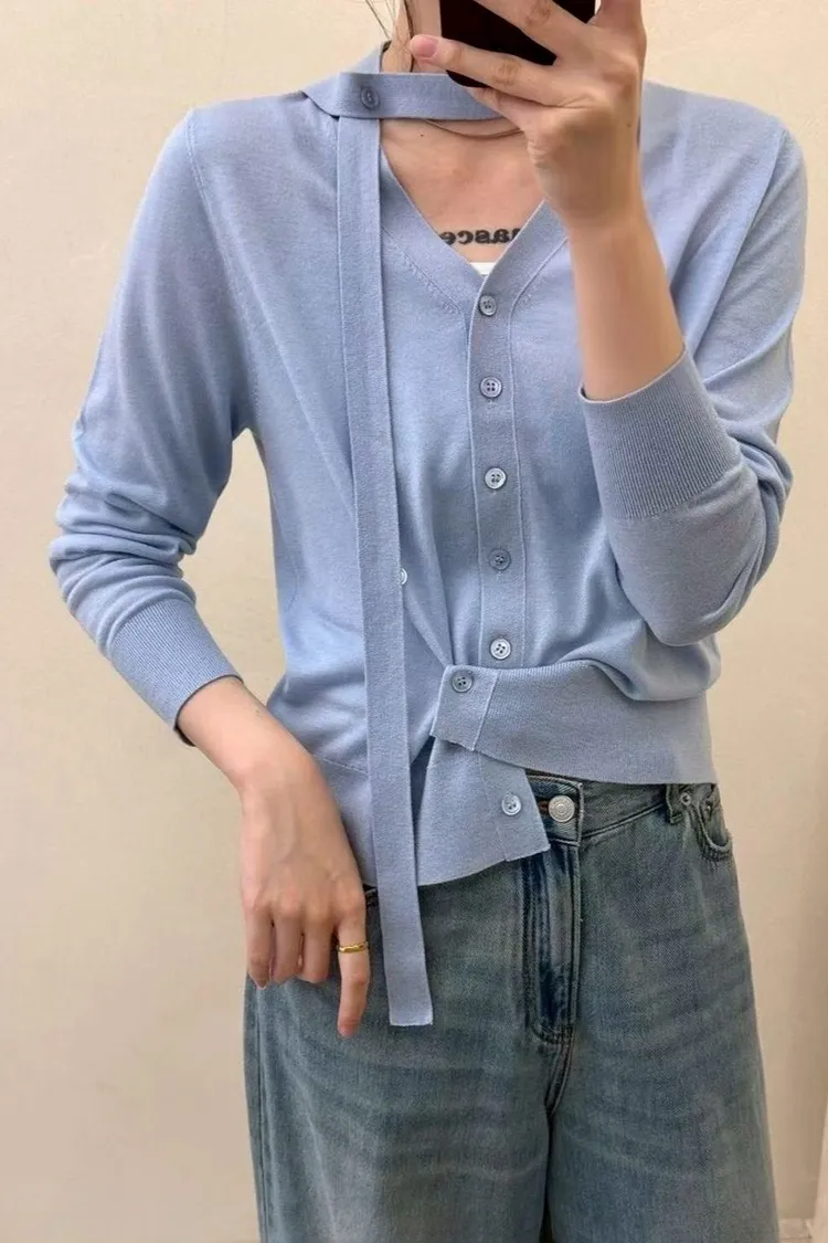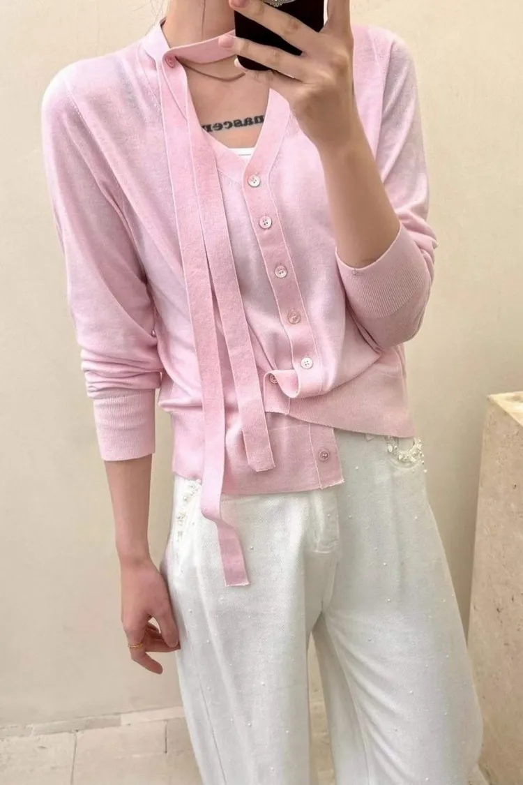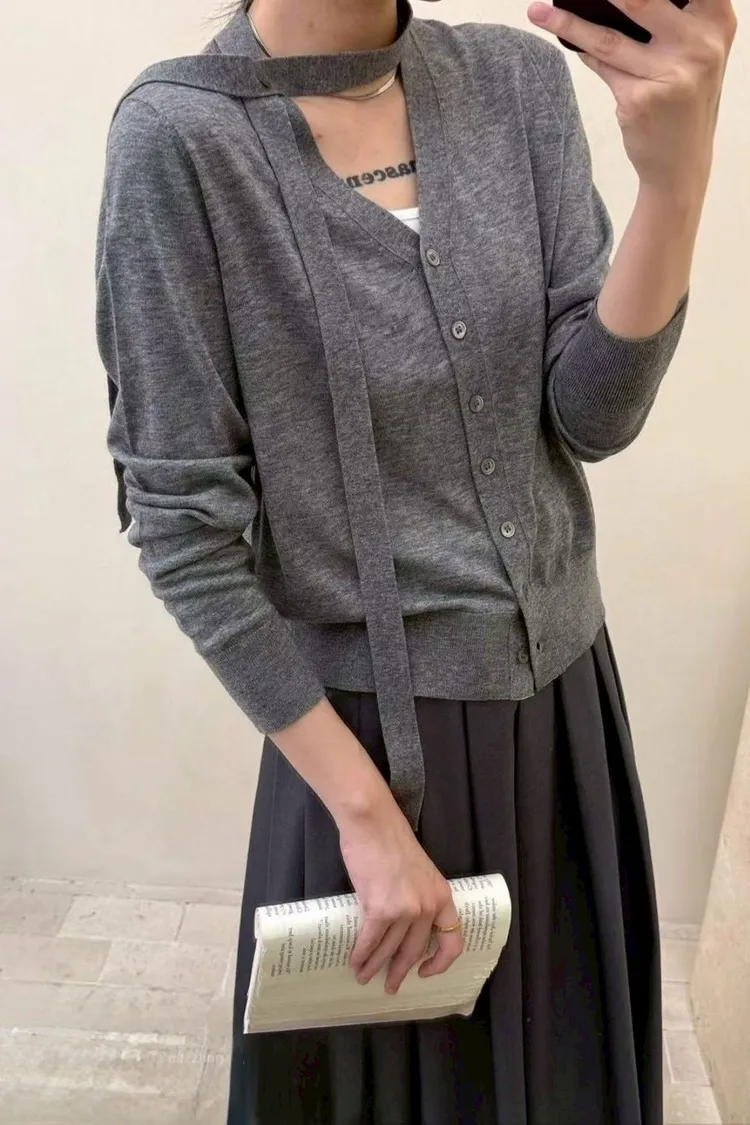 羊毛40%天絲60%綁帶排扣衣(灰,杏,藍,粉)