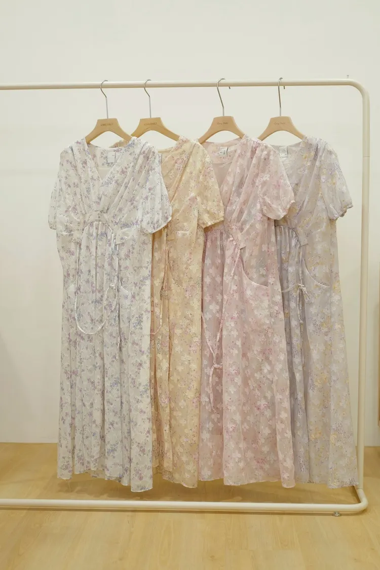 甜美花朵洋裝(白,黃,紫,粉)