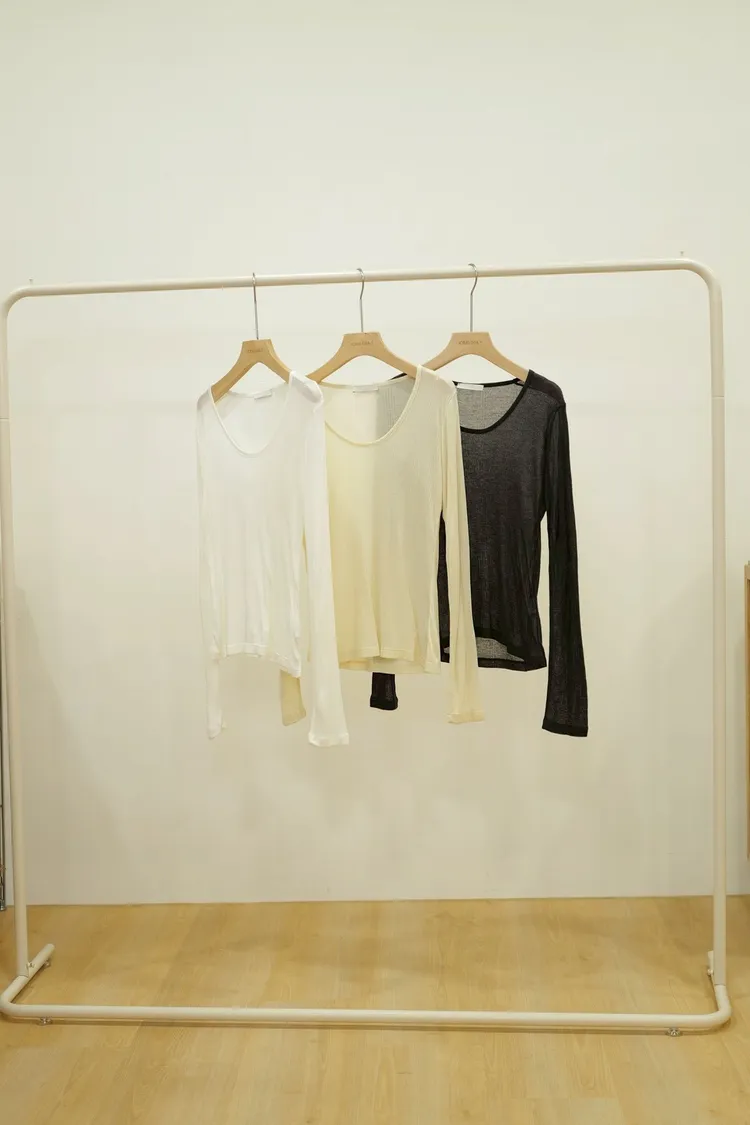 深圓領透膚上衣(白,杏,灰,黑)