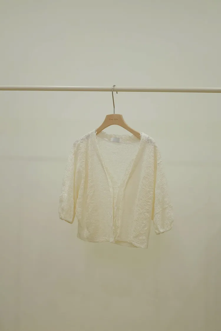刺繡蕾絲小罩衫(白,黑)