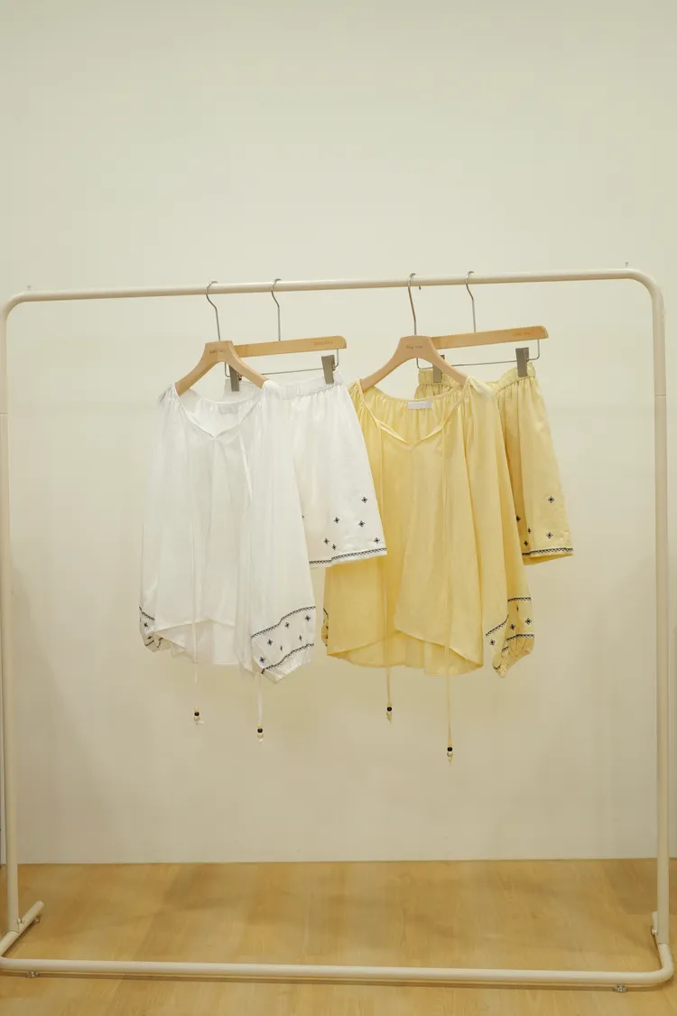 慵懶刺繡上衣短褲裙SET(白,黃)