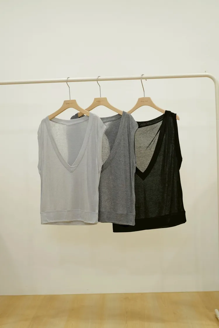 天絲80%羊毛20%休閒寬肩V領上衣(淺灰,深灰,黑)