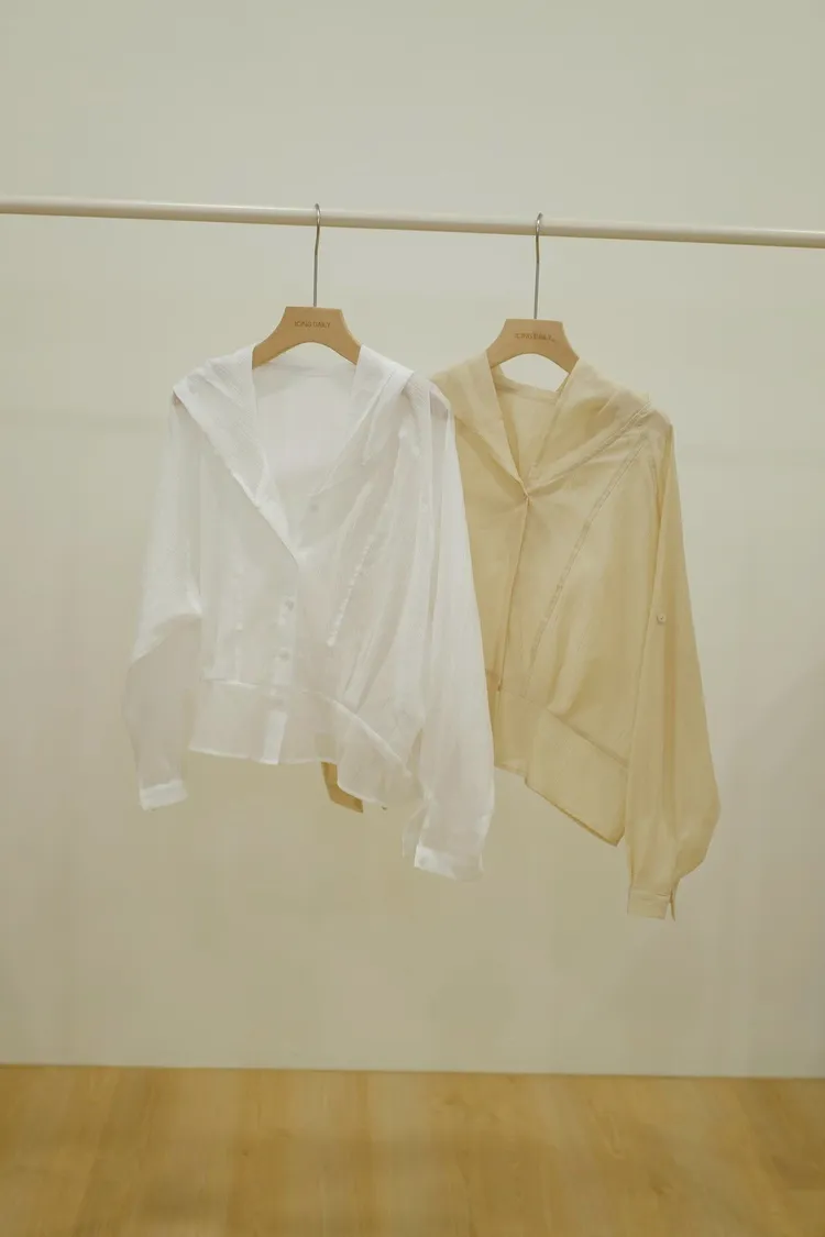 氣質抓皺翻領上衣(白,杏,灰)