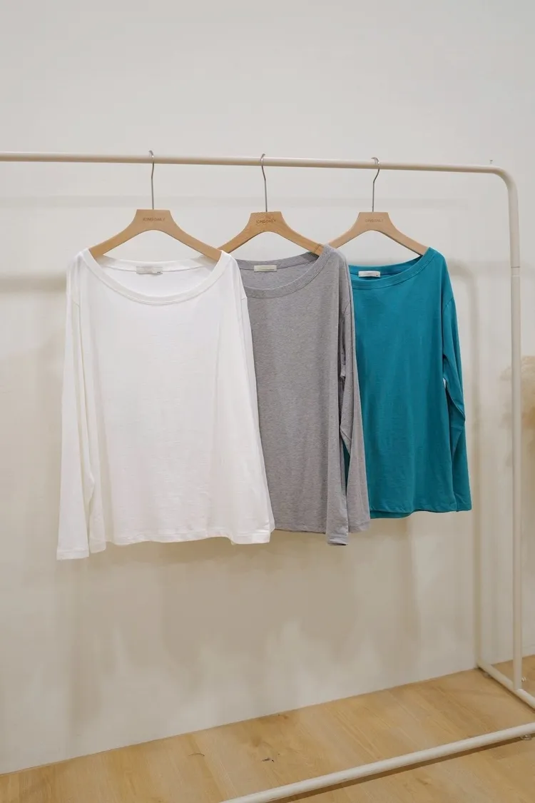 慵懶寬圓領上衣(白,灰,藍)