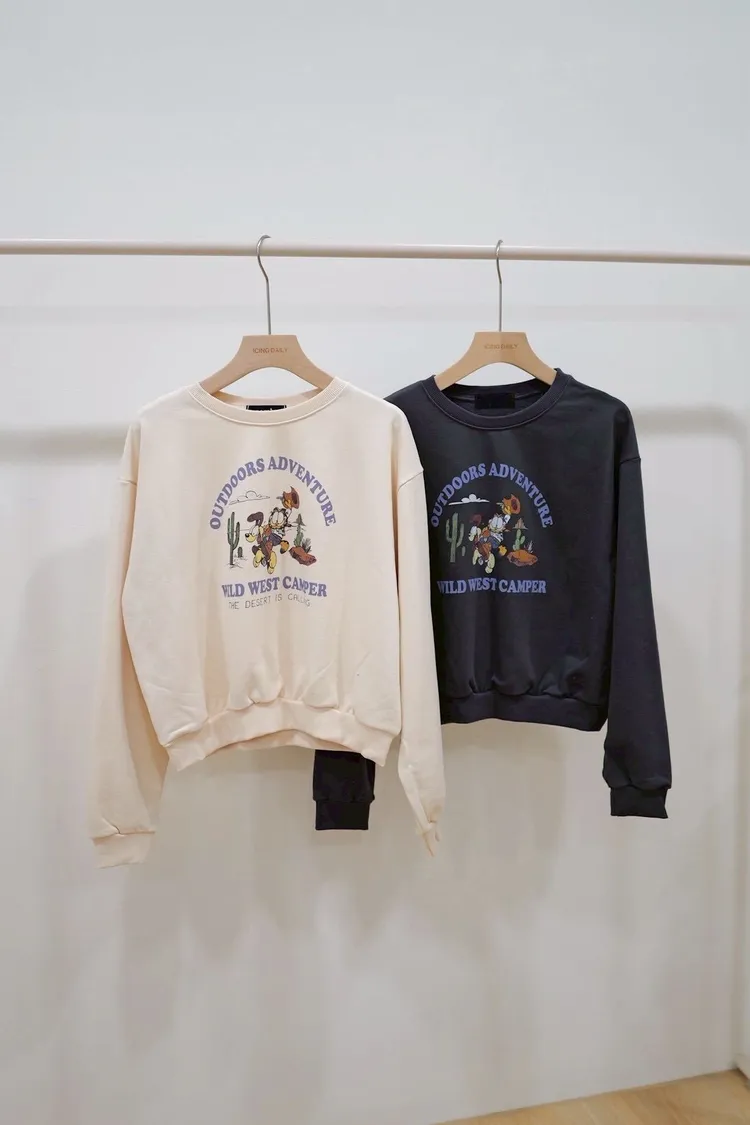 慵懶字母卡通T(白,灰)