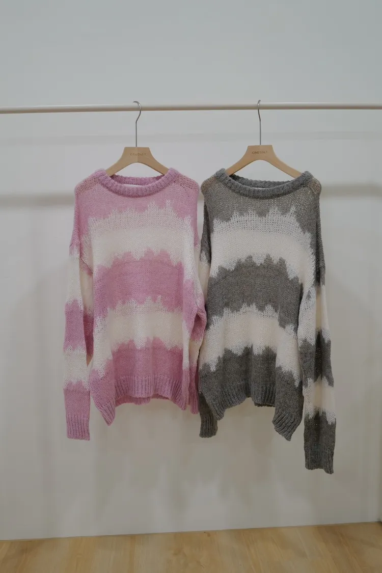 羊駝毛5%慵懶長版紋路上衣(灰,粉)