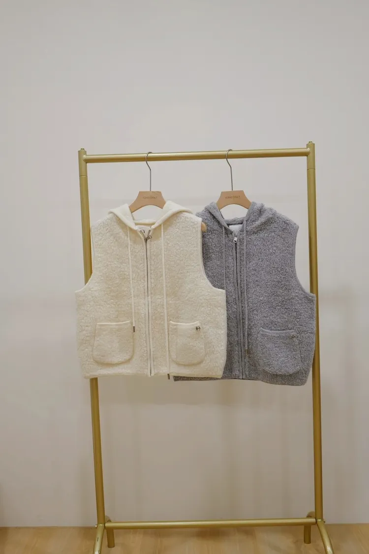 羊毛100%減齡毛毛拉鍊背心(白,灰)