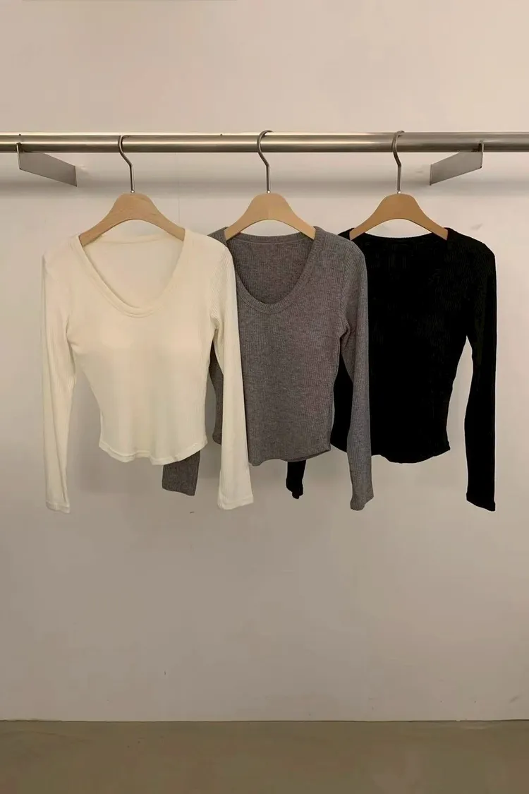 休閒坑條深圓領Bra上衣(白,灰,黑)