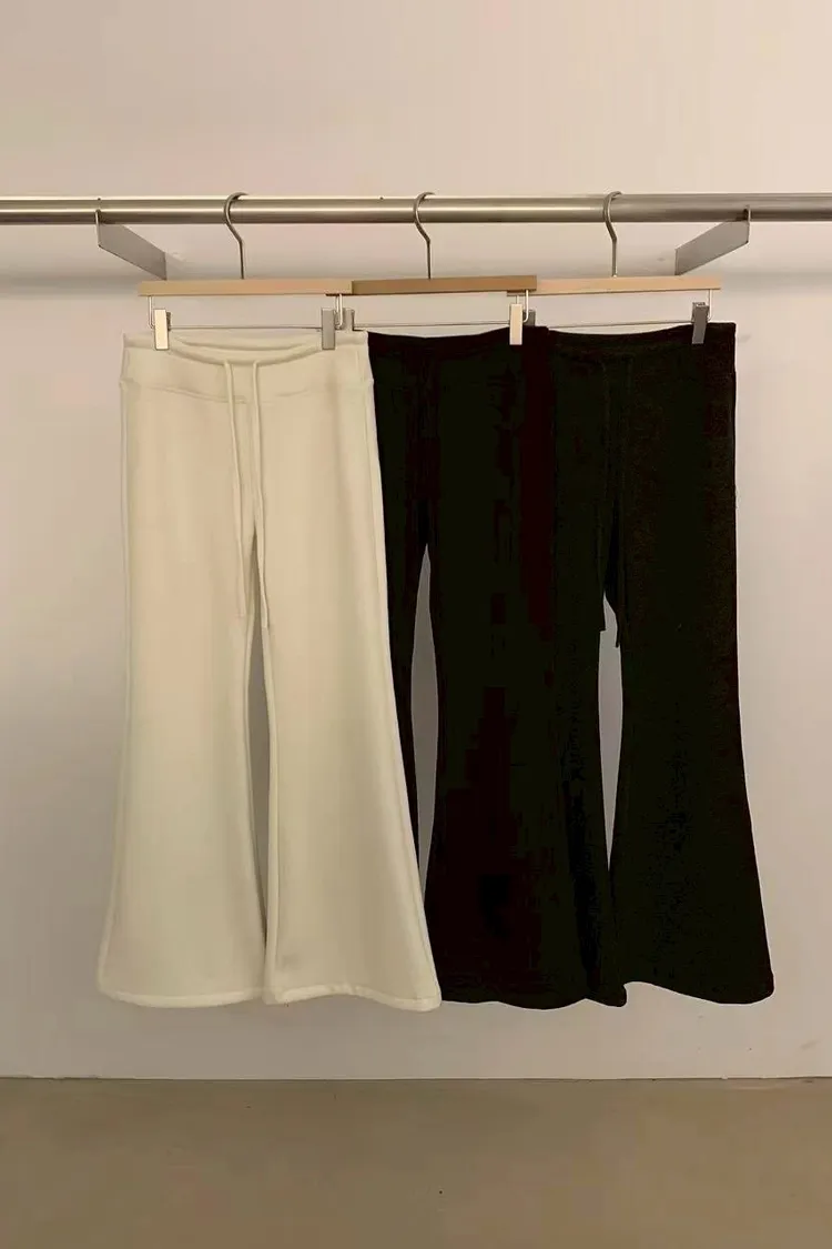 羊毛5%人造絲41%氣質綁帶喇叭長褲(白,咖,黑)