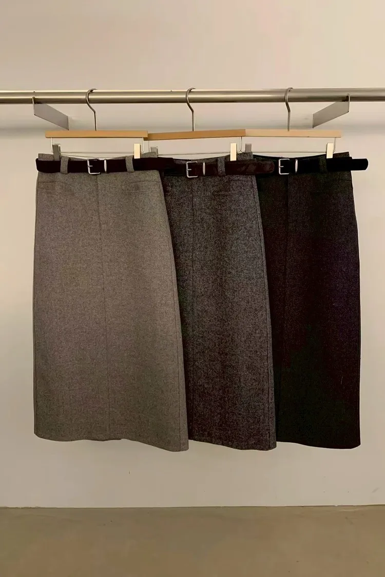 羊毛50%口袋毛昵長裙(棕,淺灰,深灰)(S,M)
