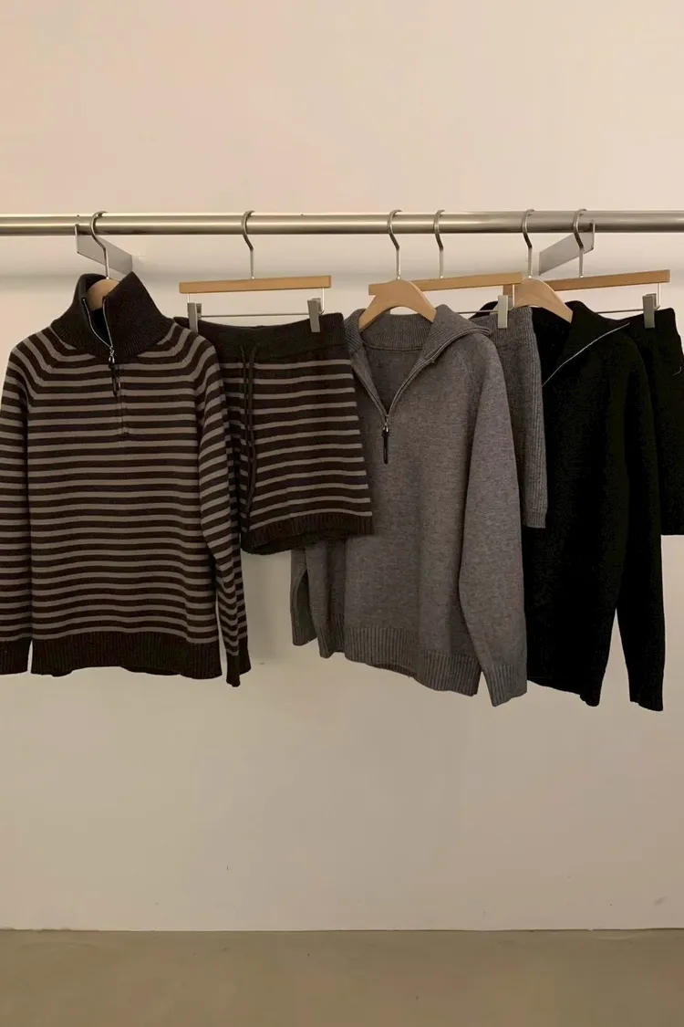 羊毛6%好看版型立領上衣短褲set(條紋,灰,黑)