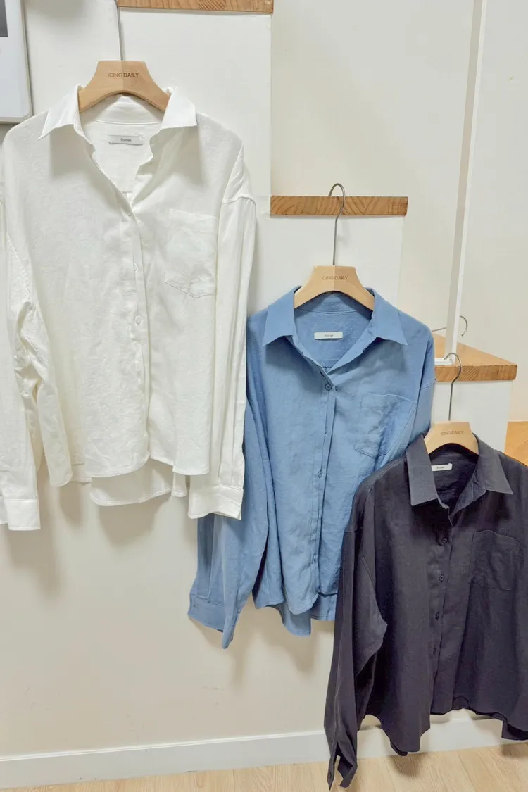 百搭落肩口袋襯衫(白,藍,灰)