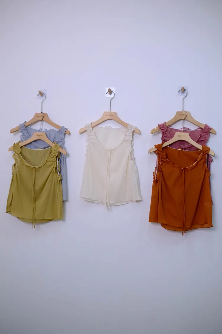 荷葉肩帶透膚背心(藍,白,粉,黃,棕,黑)