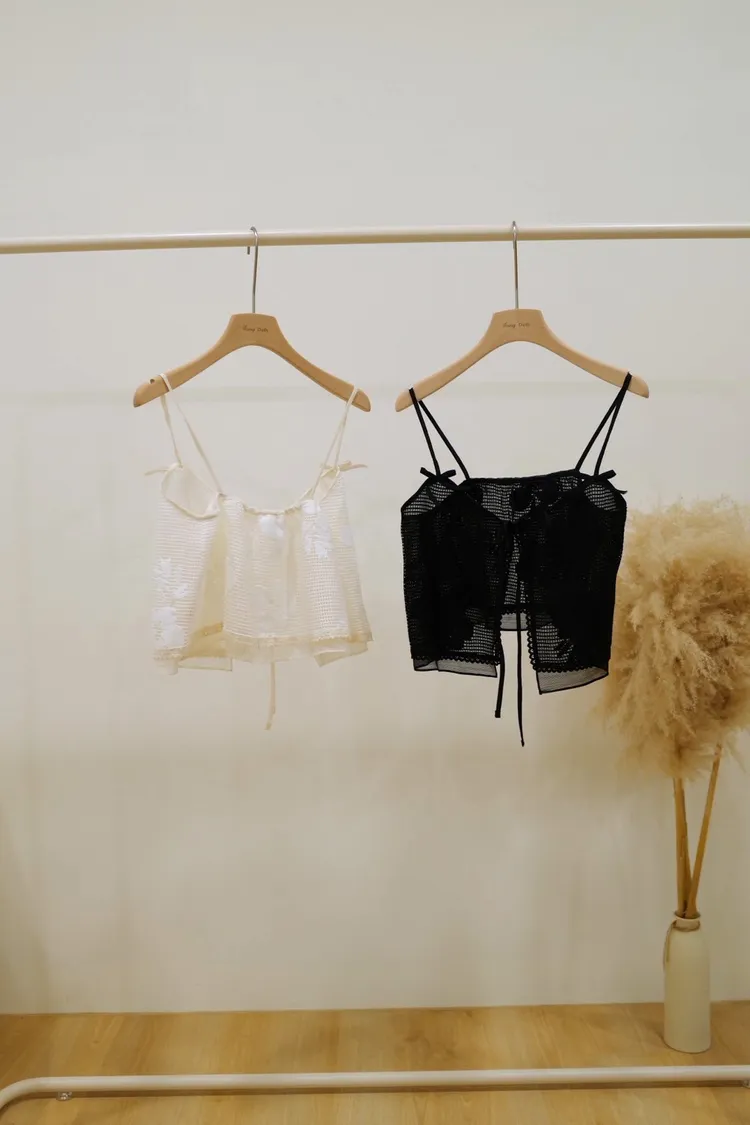 刺繡綁帶背心(白,黑)