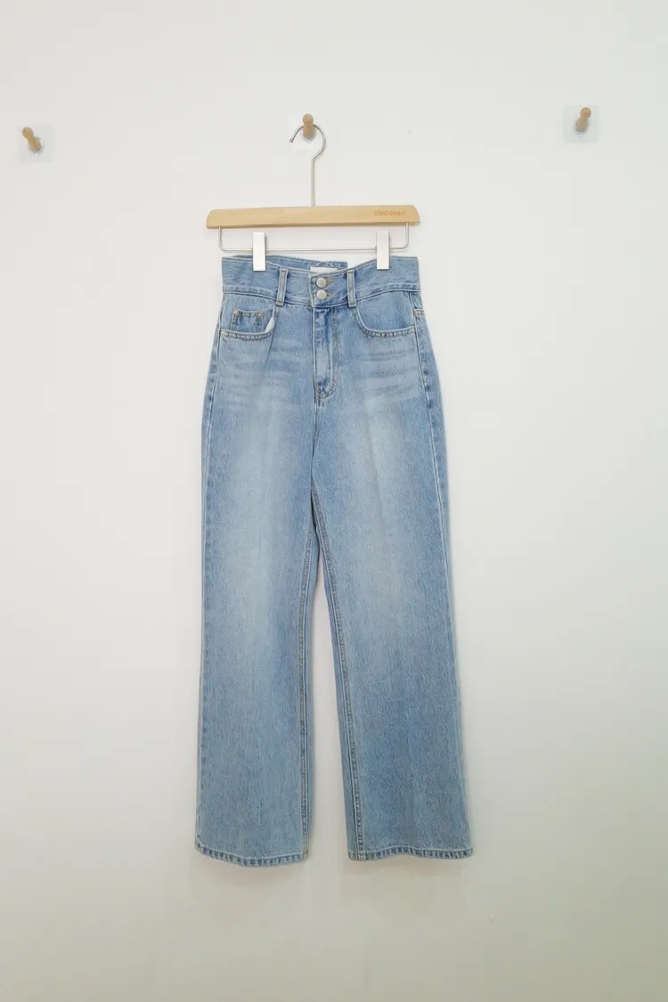 雙釦寬版牛仔褲(S,M,L)