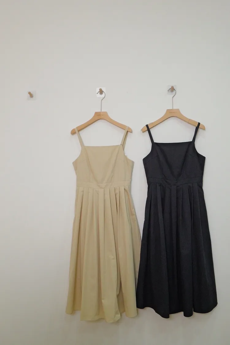 細肩打摺洋裝(杏,黑)