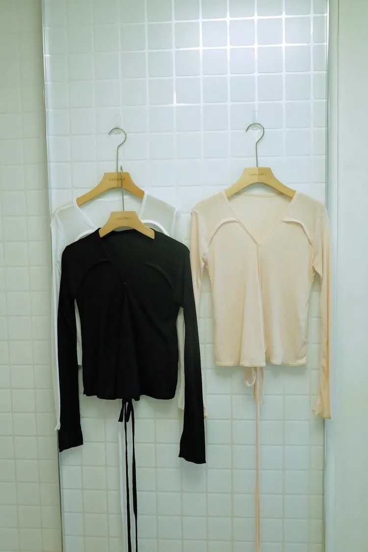 慵懶氣質綁帶坑條上衣(白,杏,黑)
