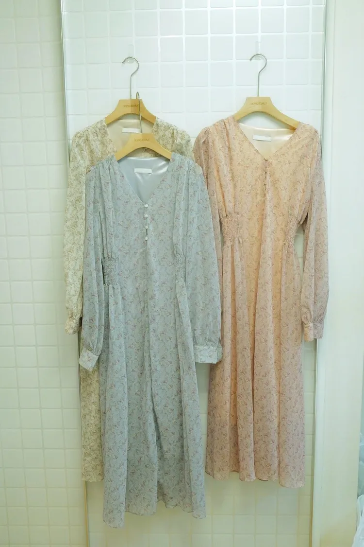 好看配色排釦洋裝(米,粉,藍)