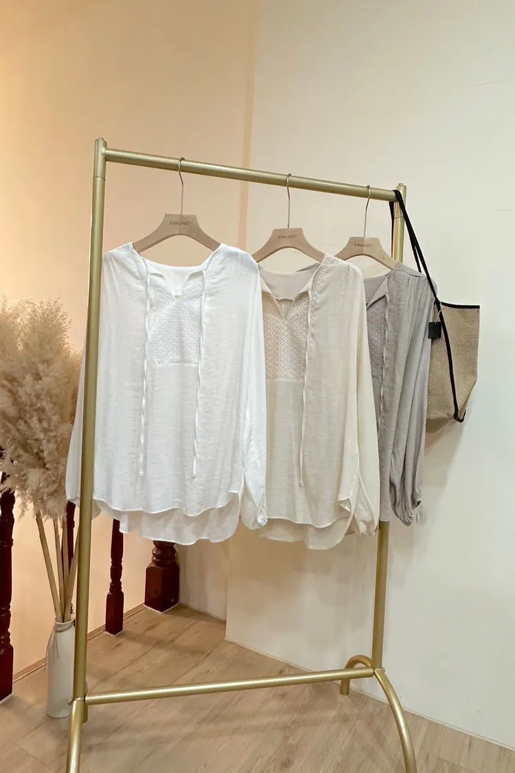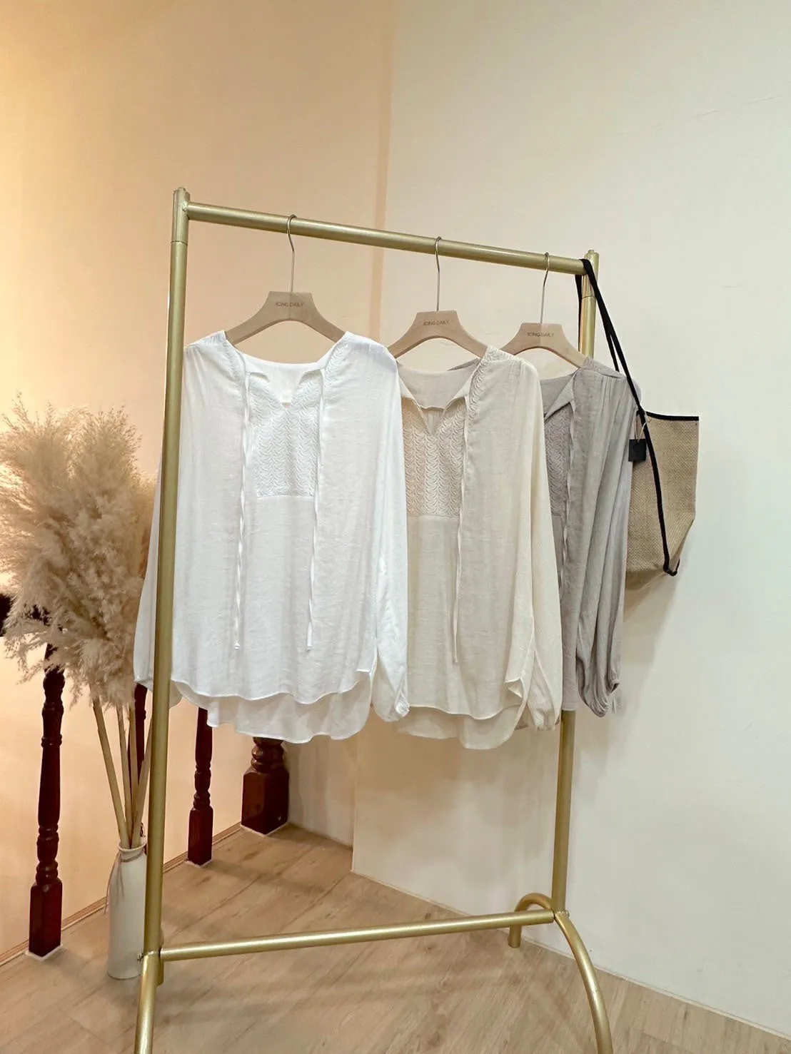 氣質刺繡薄長袖上衣(白,杏,灰)
