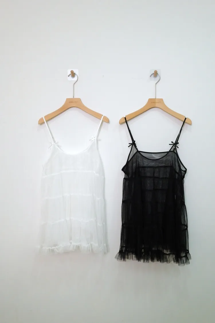 透膚蝴蝶結減齡背心(白,黑)