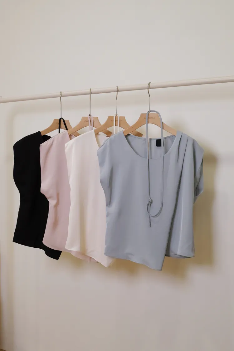 光澤打摺綁帶上衣(米,粉,藍,黑)