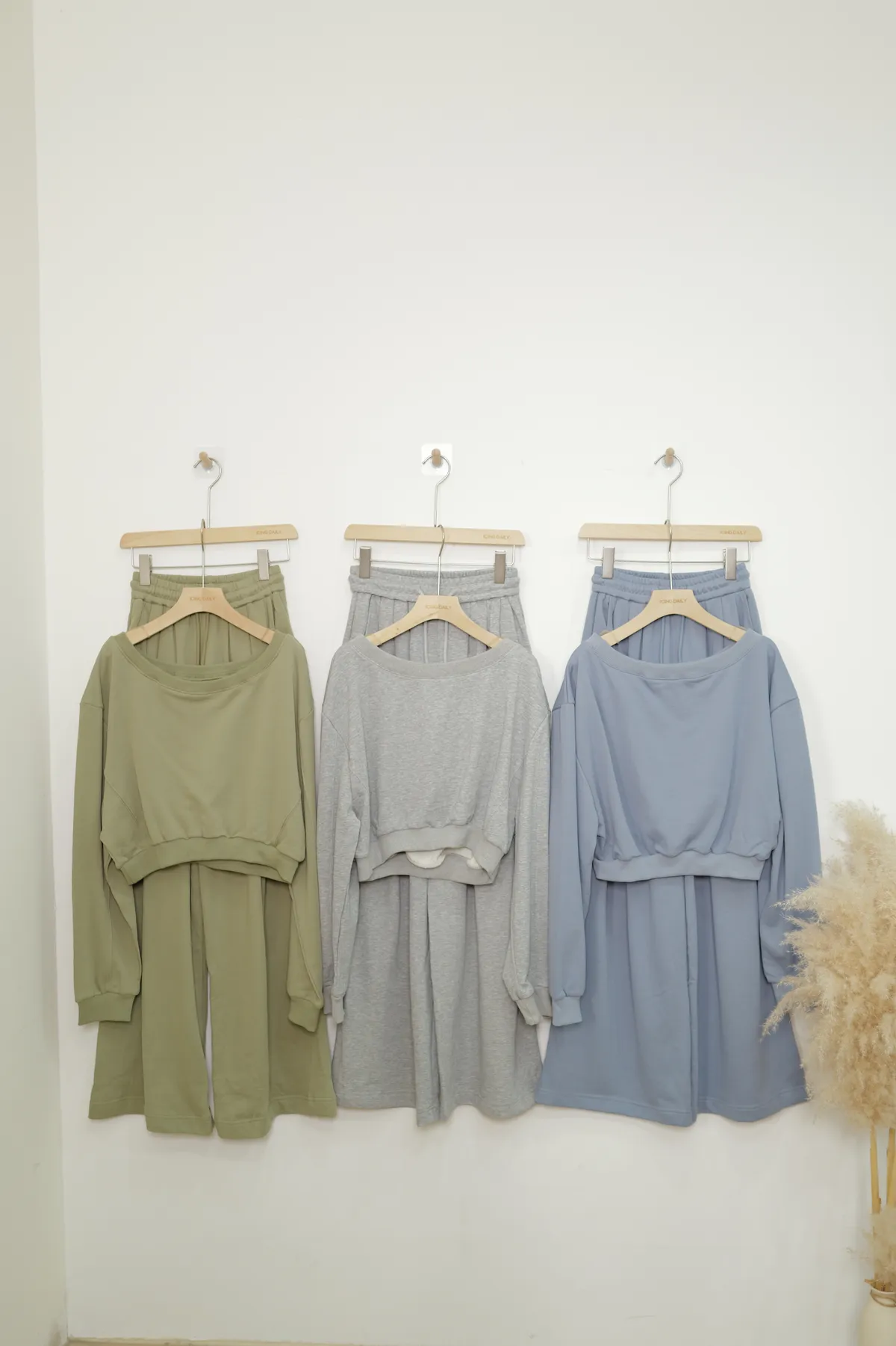 慵懶休閒平口上衣抽繩長褲SET(藍,灰,綠)