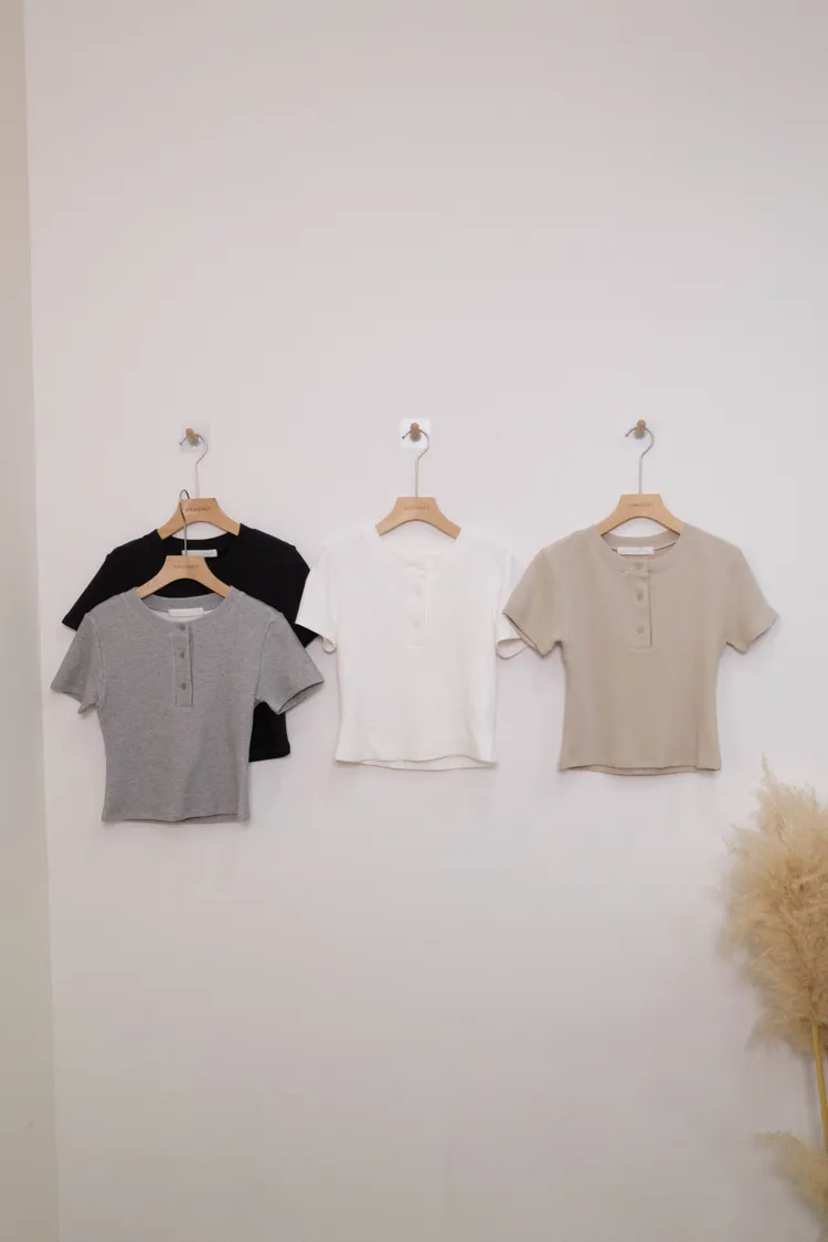 簡約排扣短版上衣(白,杏,灰,黑)