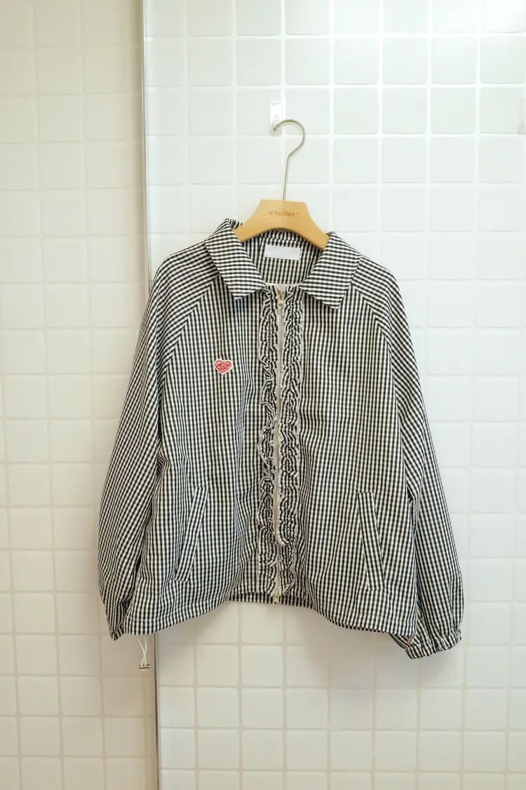 愛心刺繡格紋拉鍊外套