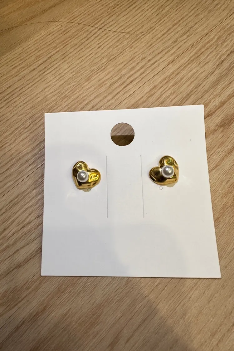 熔岩愛心珍珠耳環(銀,金)