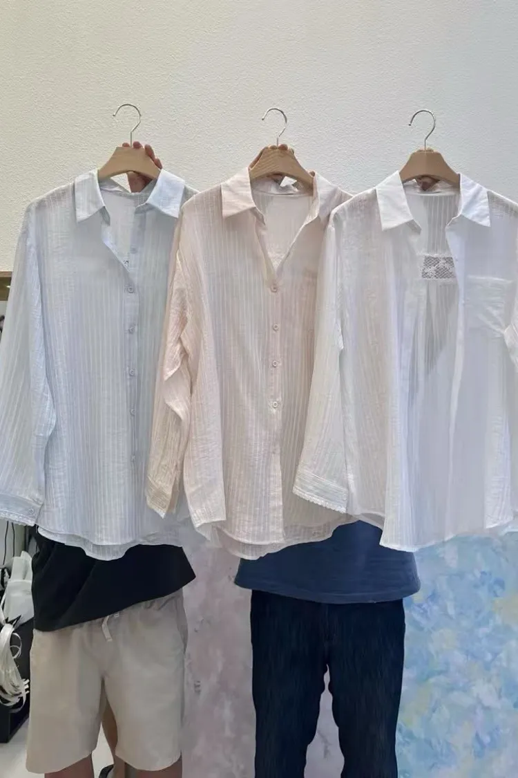 直條排釦翻領襯衫(白,粉,藍)