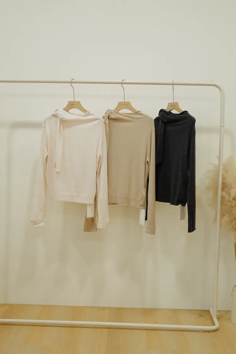美麗諾羊毛30%優雅綁帶上衣(米,杏,灰)