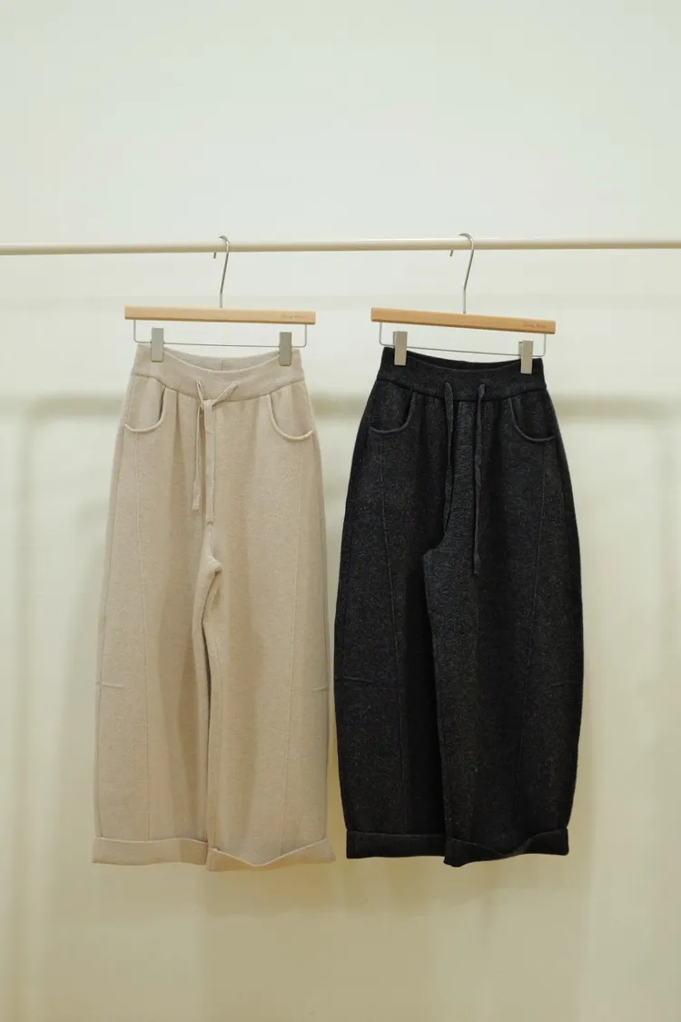 羊毛10%寬版綁帶針織長褲(米,灰)(M,L)