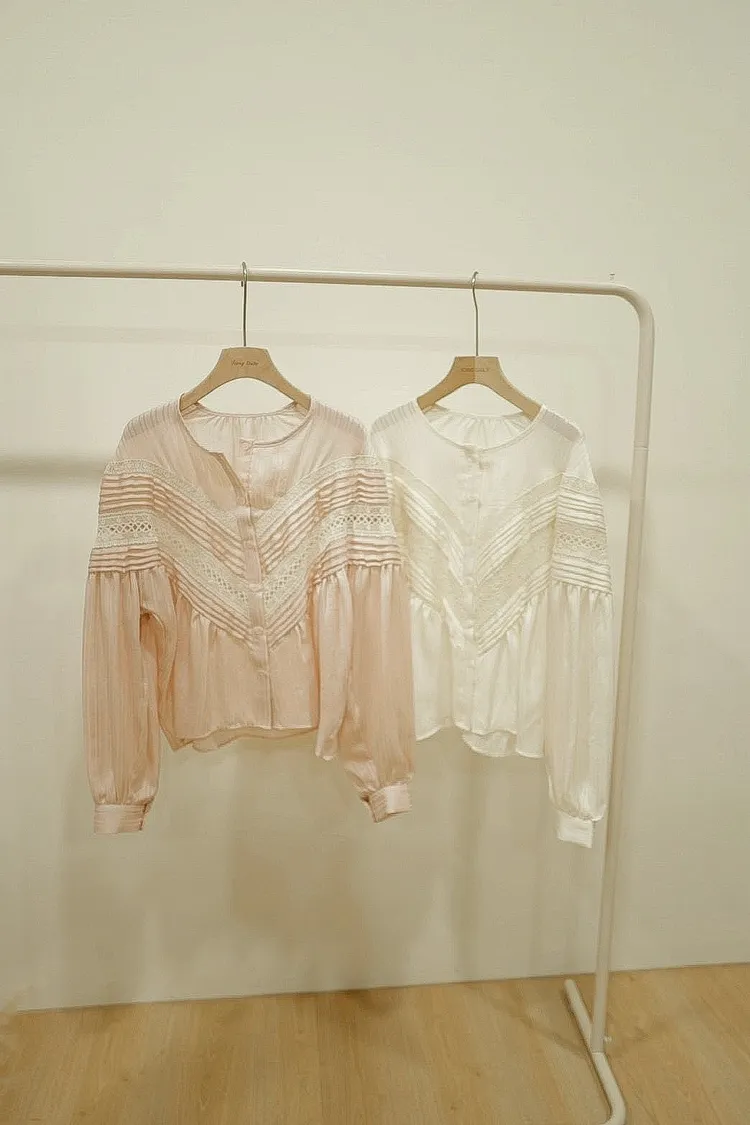 打摺紋路排釦上衣(白,粉,黑)
