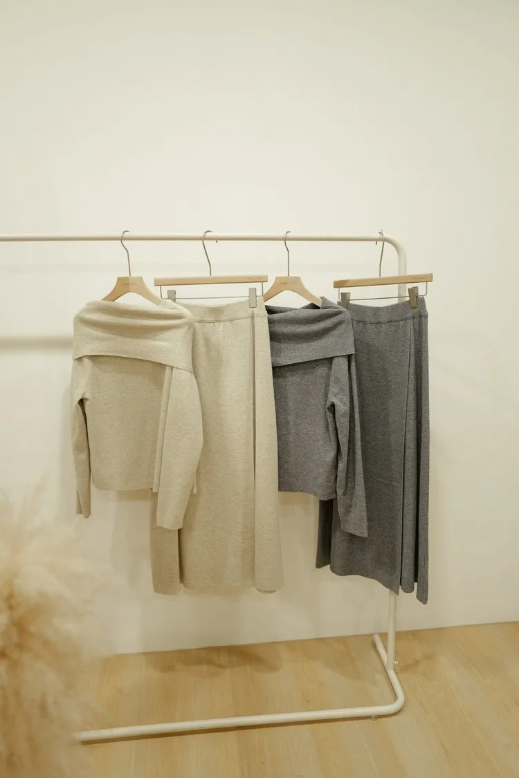 羊絨10%棉50%溫柔一字領SET(杏,灰)